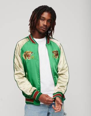 Superdry Sukajan embroidered bomber jacket in bowling green