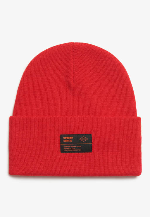 Superdry Surplus knitted beanie hat in risk red