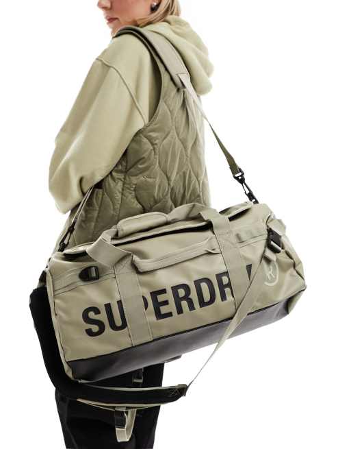Superdry tarp barrel bag in Winter Twig Beige