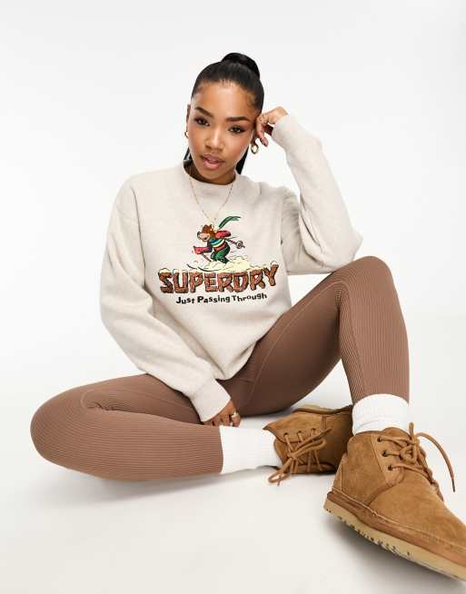 Superdry travel postcard graphic crew neck top in Oat Cream Marl
