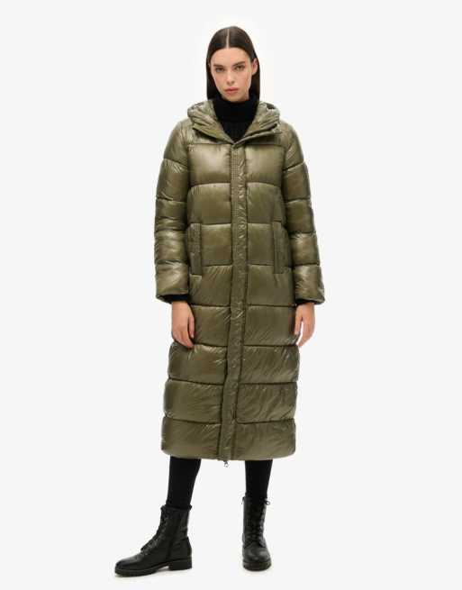 Superdry Xpd sports longline puffer coat in dusty olive