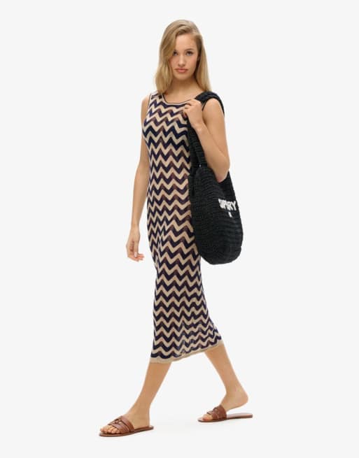 Superdry Zig zag knit midi dress in navy gold zigzag