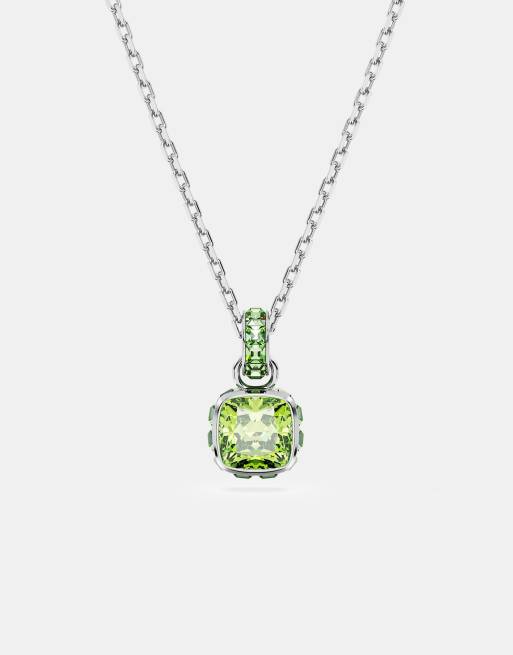 Swarovski Birthstone pendant, square cut, august, green, rhodium plated in green, rhodium plating