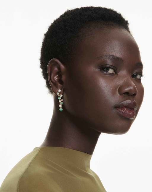 Swarovski Constella drop earrings, mixed cuts, green, gold-tone plated in green