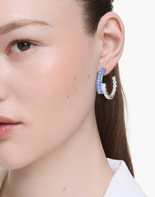 Swarovski Matrix hoop earrings, mixed cuts, blue, rhodium plated in blue