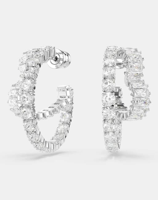 Swarovski Matrix hoop earrings, mixed cuts, heart, white, rhodium plated in white