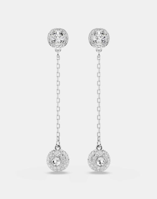 Swarovski Una angelic drop earrings, round cut, white, rhodium plated in white