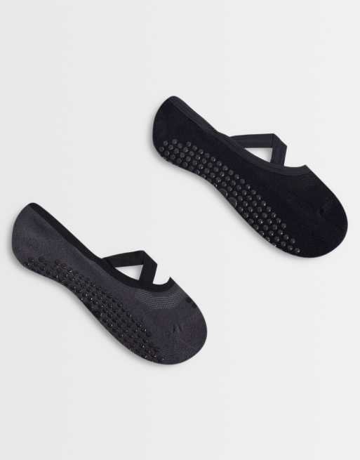 Sweaty Betty 2 pack ballet grip Pilates socks in black and grey