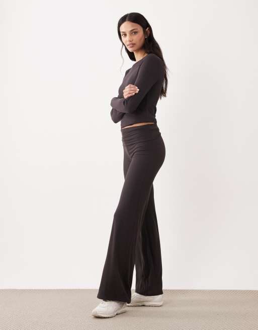 TALA 365 roll waist flared trousers in espresso - BROWN