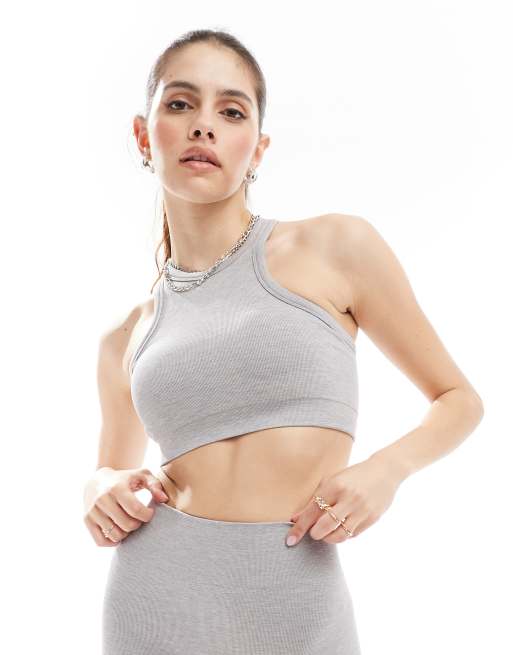 TALA Sculpt Seamless ribbed racerback sports bra in light grey