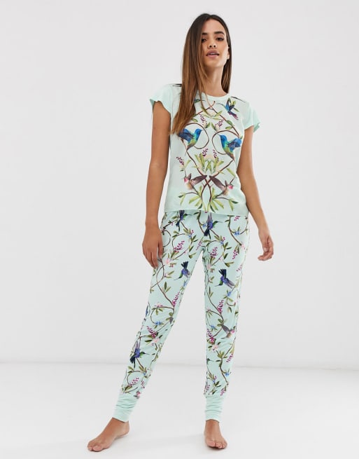 B By Ted Baker Highgrove bird print jersey pyjama set in mint
