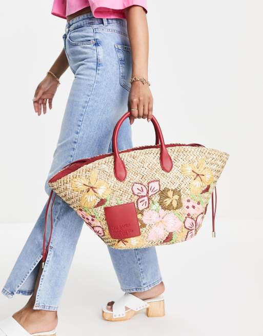 Ted Baker Appela embroidered straw basket bag in cinnamon