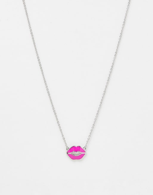 Ted Baker emani kiss kiss pink enamel pendant in silver