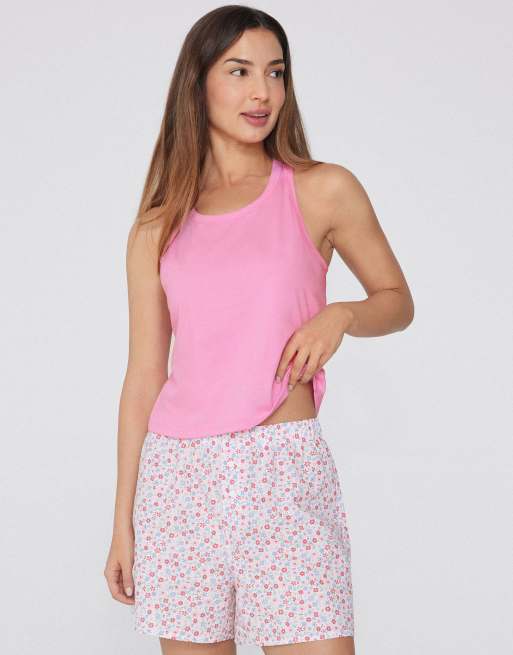 Tezenis Cotton canvas shorts in pale pink and white flowers