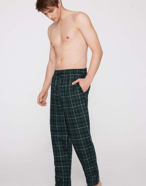 Tezenis Cotton canvas trousers with pockets in check verde blu