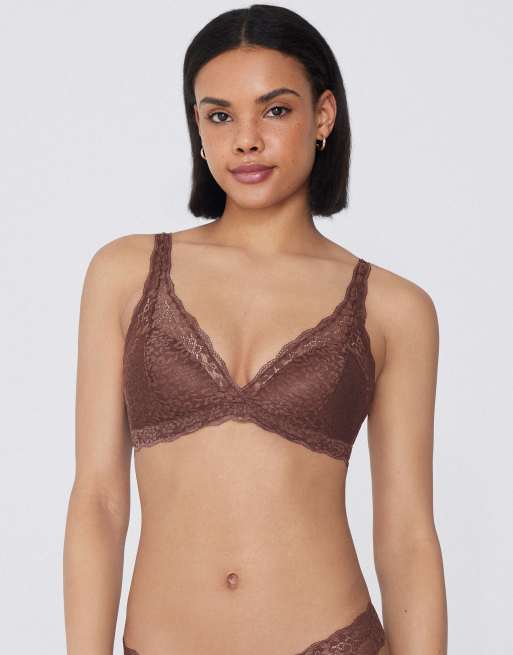 Tezenis Havana lace triangle bra in caramel dark beige