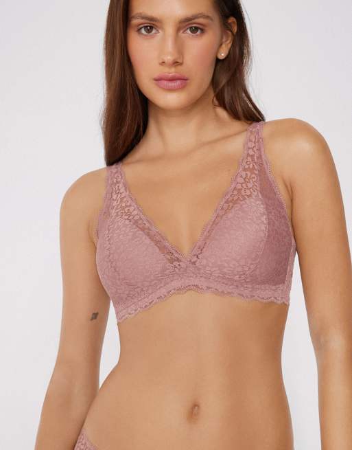 Tezenis Havana lace triangle bra in champagne pink