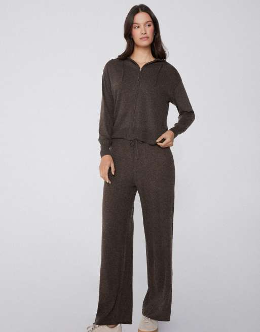 Tezenis Heavy palazzo trousers with wool in brown melange