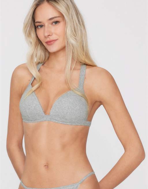 Tezenis Ibiza cotton cutie padded triangle bra in mottled light grey