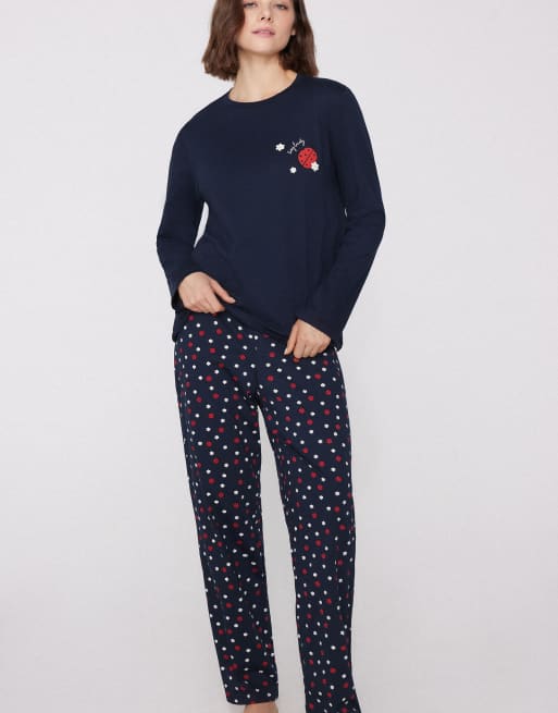 Tezenis Ladybug print cotton long pyjamas in absolute blue with ladybirds