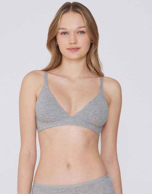 Tezenis Lisbon cotton triangle bra in mottled light grey