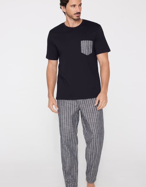 Tezenis Long pyjamas with pocket in deep blue pinstripes