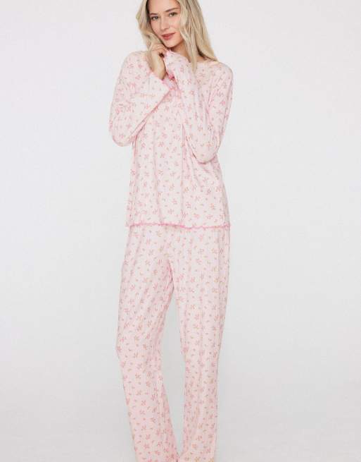Tezenis Long pyjamas with small flowers in rose with flowers