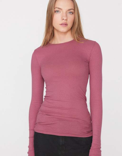 Tezenis Long sleeve round neck ribbed top in cameo pink