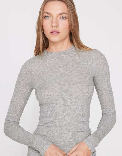 Tezenis Long sleeve round neck ribbed top in mottled light grey
