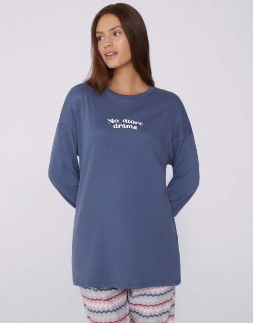 Tezenis Long-sleeved oversized cotton top in galactic blue no more drama