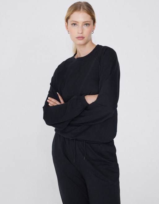 Tezenis Long-sleeved rounded neck top with cuffs in black