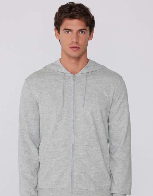 Tezenis Long-sleeved zip-up hoodie in mottled light grey