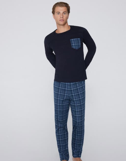 Tezenis Long pyjamas with pocket and print in deep blue denim check print