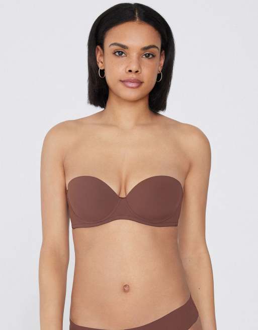 Tezenis Madrid super padded bandeau bra in caramel dark beige