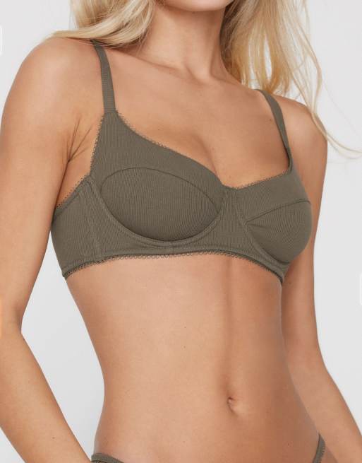 Tezenis Paris cotton cutie ribbed balconette bra in pastel military