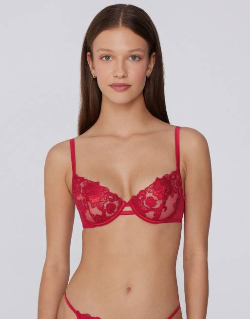 Tezenis Paris rose wonder balconette bra in winter red