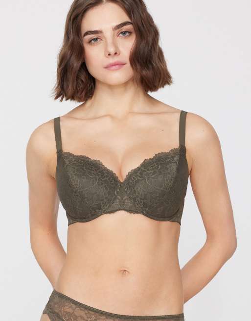 Tezenis Prague full coverage lace balconette bra in green camo