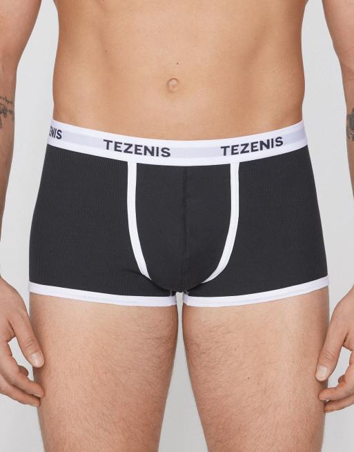 Tezenis Ribbed cotton boxers with logo elastic in dark grey/white