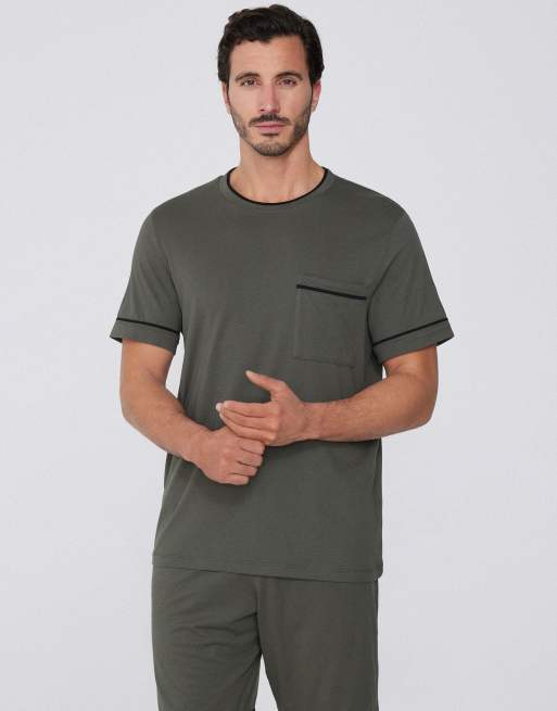 Tezenis Short pyjamas with pocket in safari green and black