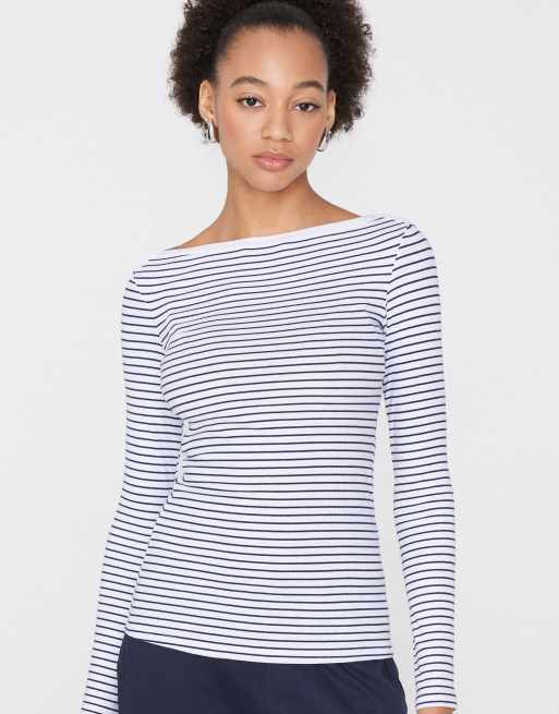 Tezenis Top long sleeve boat ribbed cot.rigata in white/blue stripes