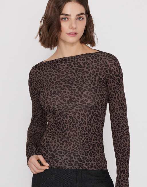 Tezenis Top long sleeve boat viscose print in dark leopard print