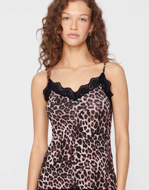 Tezenis V-neck camisole with lace insert in leopard print