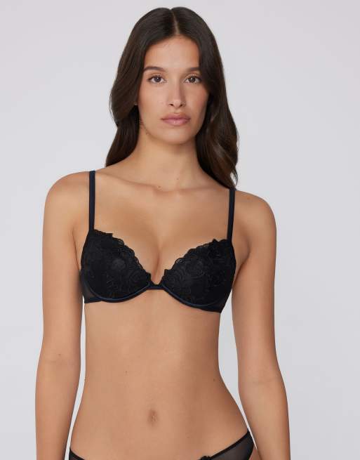 Tezenis Venice rose wonder padded push-up bra in black