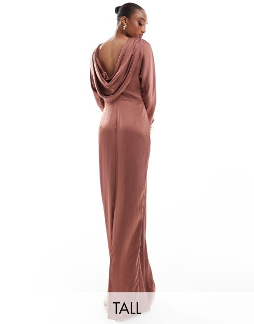 TFNC Tall long sleeve satin cowl back maxi dress in mulberry