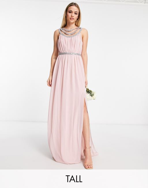 TFNC Tall premium embellished back and front maxi dress in mauve - PINK