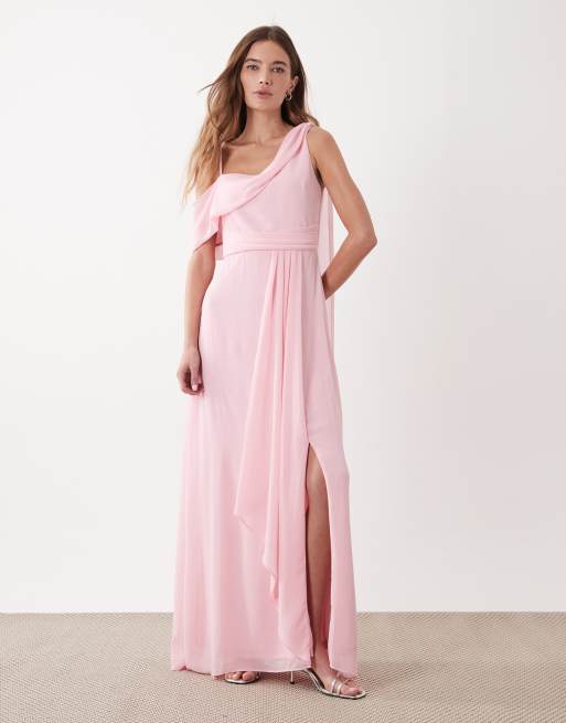 TFNC Bridesmaid chiffon fallen shoulder maxi dress in pink