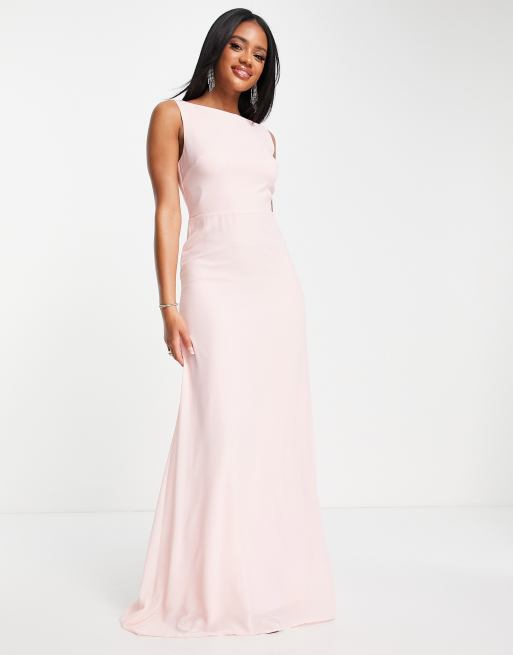 TFNC Bridesmaid high neck and draped back maxi dress in whisper pink
