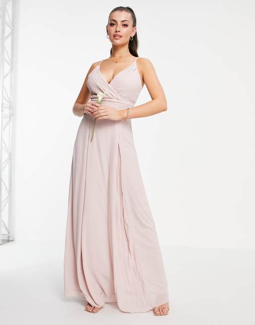 TFNC bridesmaid pleated wrap front cami maxi dress in mink
