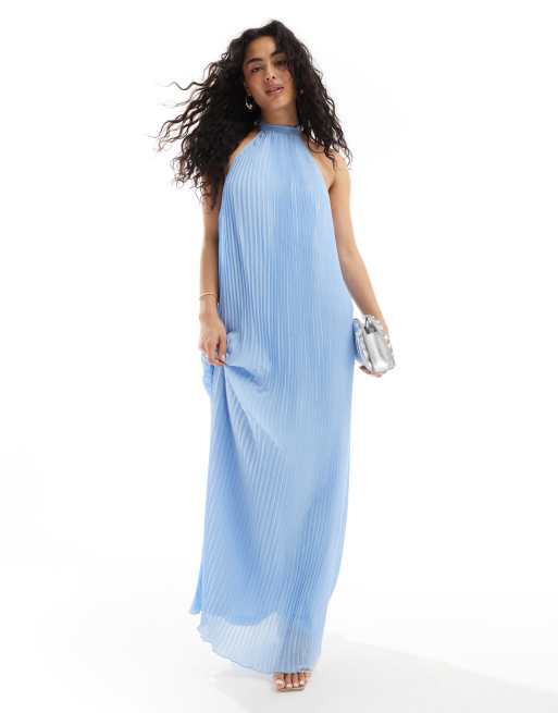 TFNC Bridesmaids chiffon pleated halterneck maxi dress in powder blue