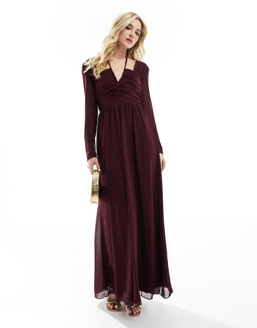 TFNC halter neck long sleeve maxi dress with cutout details in plum